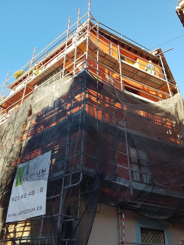 Obras de restauración de la fachada de un edificio y de recuperación de las bóvedas romanas. Durante el proceso utilizó cal.